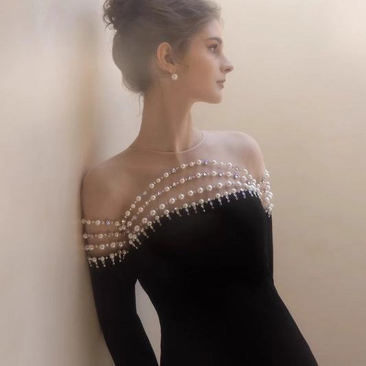 MH0071 Long Sleeve Pearl Shoulder Fish Tail