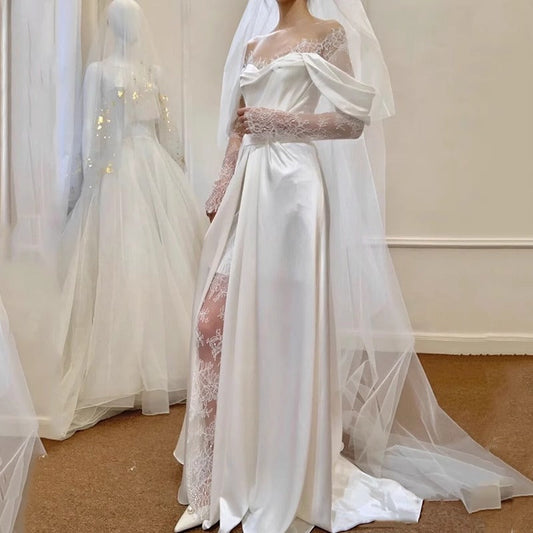 MH0114 Shoulder Small Satin Travel Photograph Wedding Dress